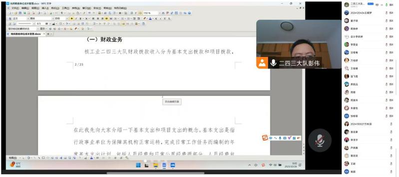 彭伟主任系统介绍了中核东北地勘中心的组织架构与业务体系,重点围绕财政项目与市场业务两大板块,深入讲解地勘单位在预算管理、成本控制及绩效考核等方面的实践经验。他结合典型案例,详细阐释“中央预算管理一体化系统”在财政资金管理中的具体应用,分享MKJ考核、集中采购等特色管控方法。此外,彭伟主任还结合近年税务稽查实例,强调票据合规、合同条款设计等关键环节在税务风险管理中的重要性,为学生提供了宝贵的实务参考。